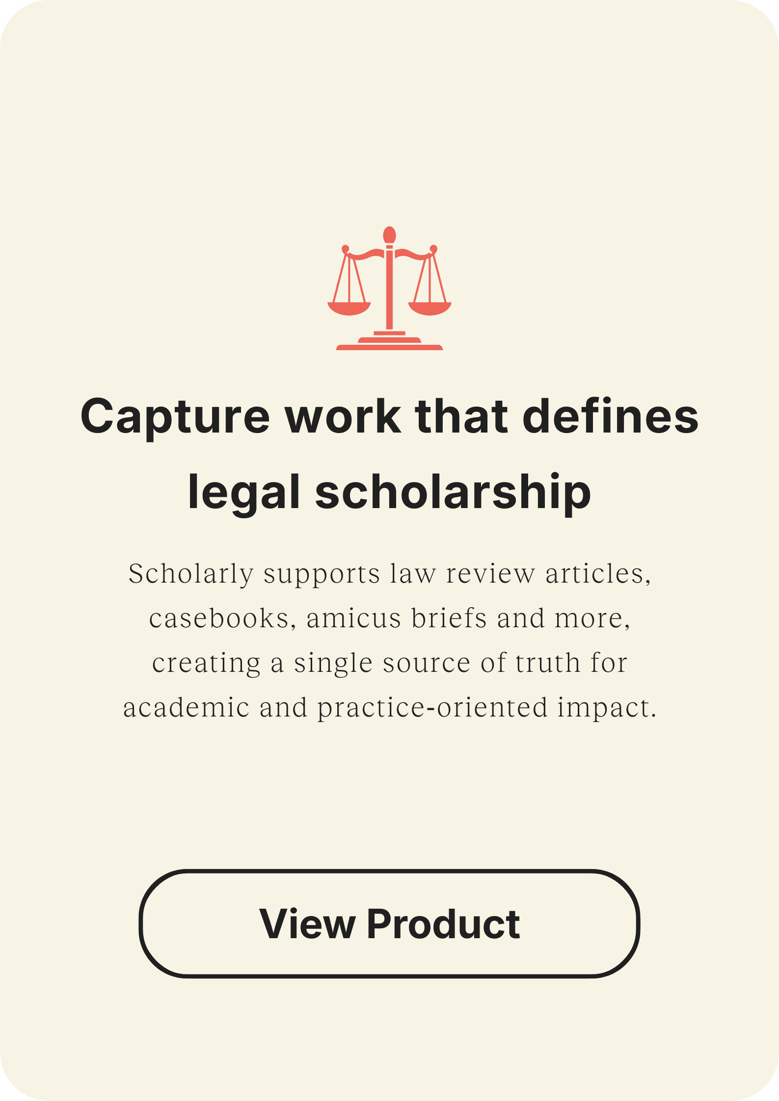 Scholarly helps law schools move faculty affairs forward with less friction, clearer insight and faster impact. Trusted by leading law schools, we bring an AI‑native experience to the work you do every day while meeting rigorous security standards and fitting cleanly into your existing systems.